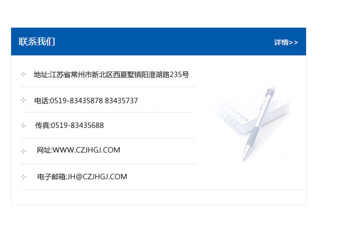 地址:常州市新北區友邦商務大廈1幢16、17層  電話:0519-85101652  傳真:0519-85112595  郵編:213022  網址:www.cz-jiayue_cn.jtrestyling.com  郵箱:xiajifengaa@163.com